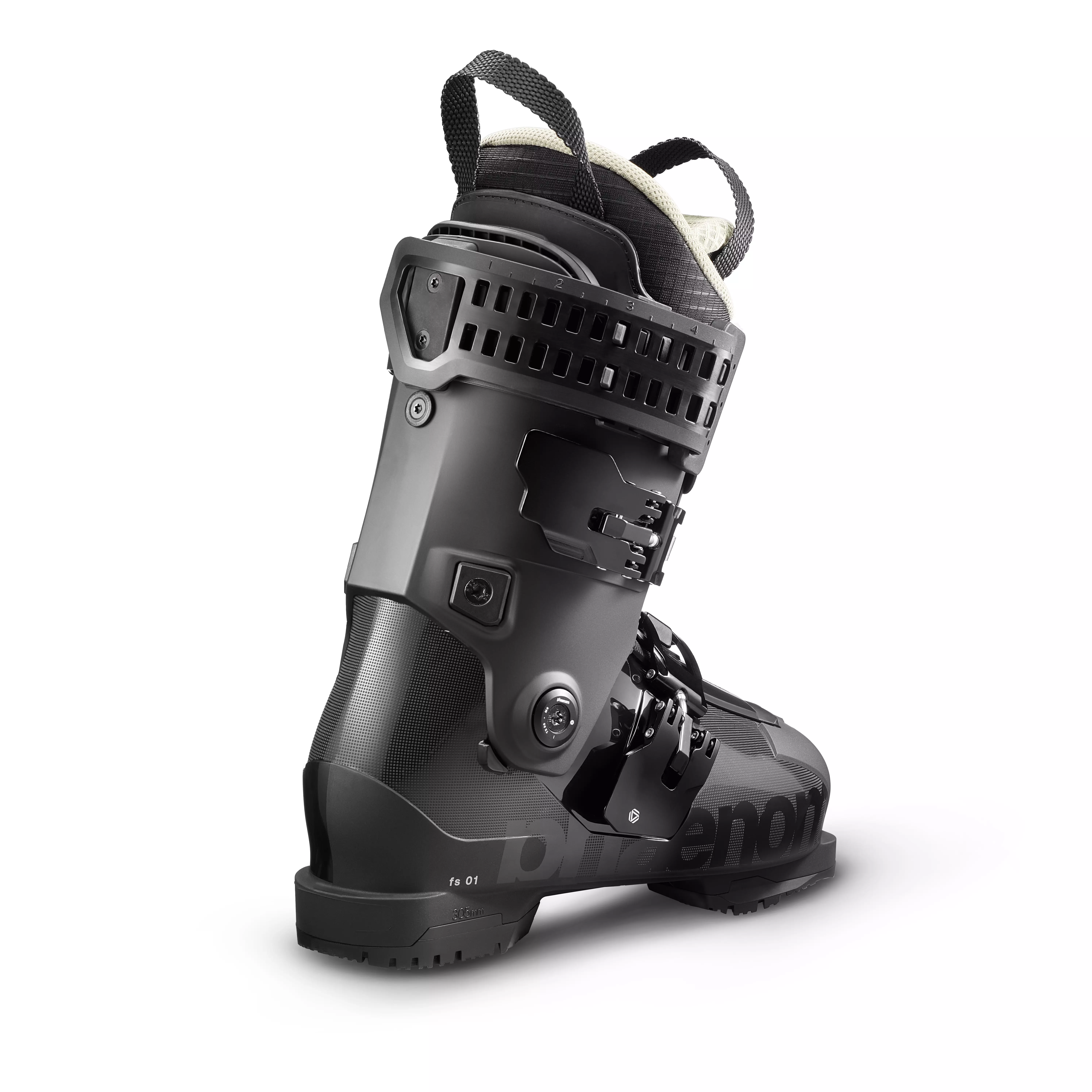 The fs 01 100 is the all-mountain freeski boot designed to achieve flex perfection, power transmission and shock absorption. The fs 01 100 is designed for those seeking both comfort and performance. It offers a more forgiving yet responsive feel.