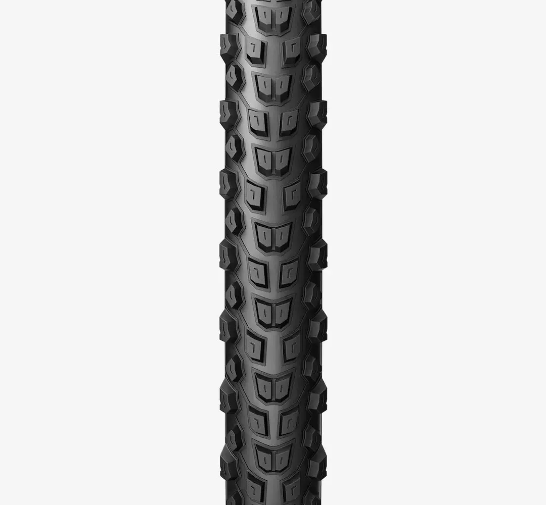 Протекторът се състои от високи и широко разположени издатини, които гарантират отлично представяне и повишено механично сцепление. Това генерира уникална реакция, прецизно усещане за сцепление и спиране, както и отлична опора при завиване. На свой ред, голямото разстояние между ушите помага на гумата да се отърве от калта и да работи по всяко време.