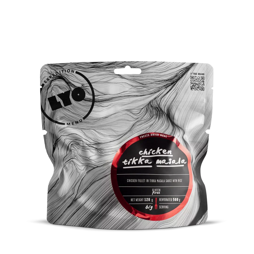 Наслади се на вкусно и питателно индийско ястие, където и да си. LYO Chicken Tikka Masala е кремообразно и ароматно ястие, вдъхновено от класическата индийска кухня. Сочно пилешко филе, мариновано в гъсто гръцко кисело мляко и наситени подправки, се задушава в доматен сос с лек кокосов аромат. Поднесено с ориз, то е не само вкусно, но и калорично богато – идеално за възстановяване на енергията след тежък преход или приключение.